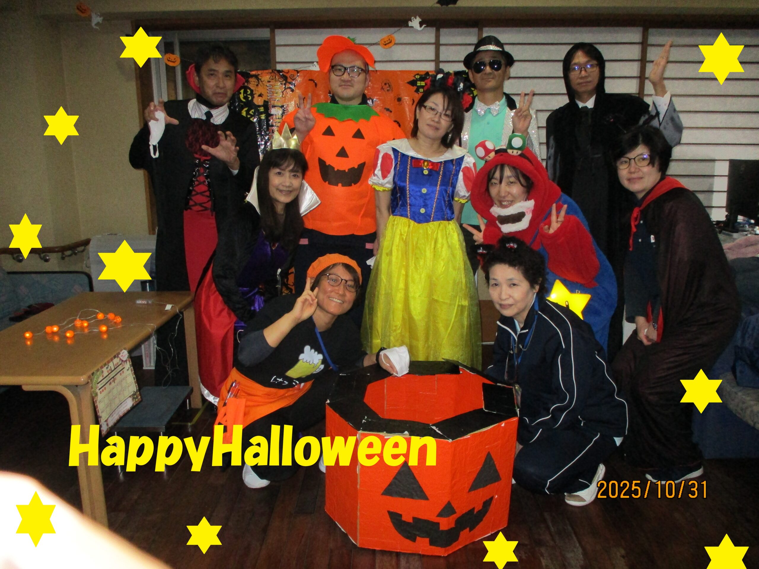 当日は、施設スタッフはもちろん、併設の清川病院からもスタッフが仮装して参加させていただきました。地域の子どもたちとその保護者の方々に楽しんでいただき、町内をいっそう賑やかにすることを目的としたイベントです。