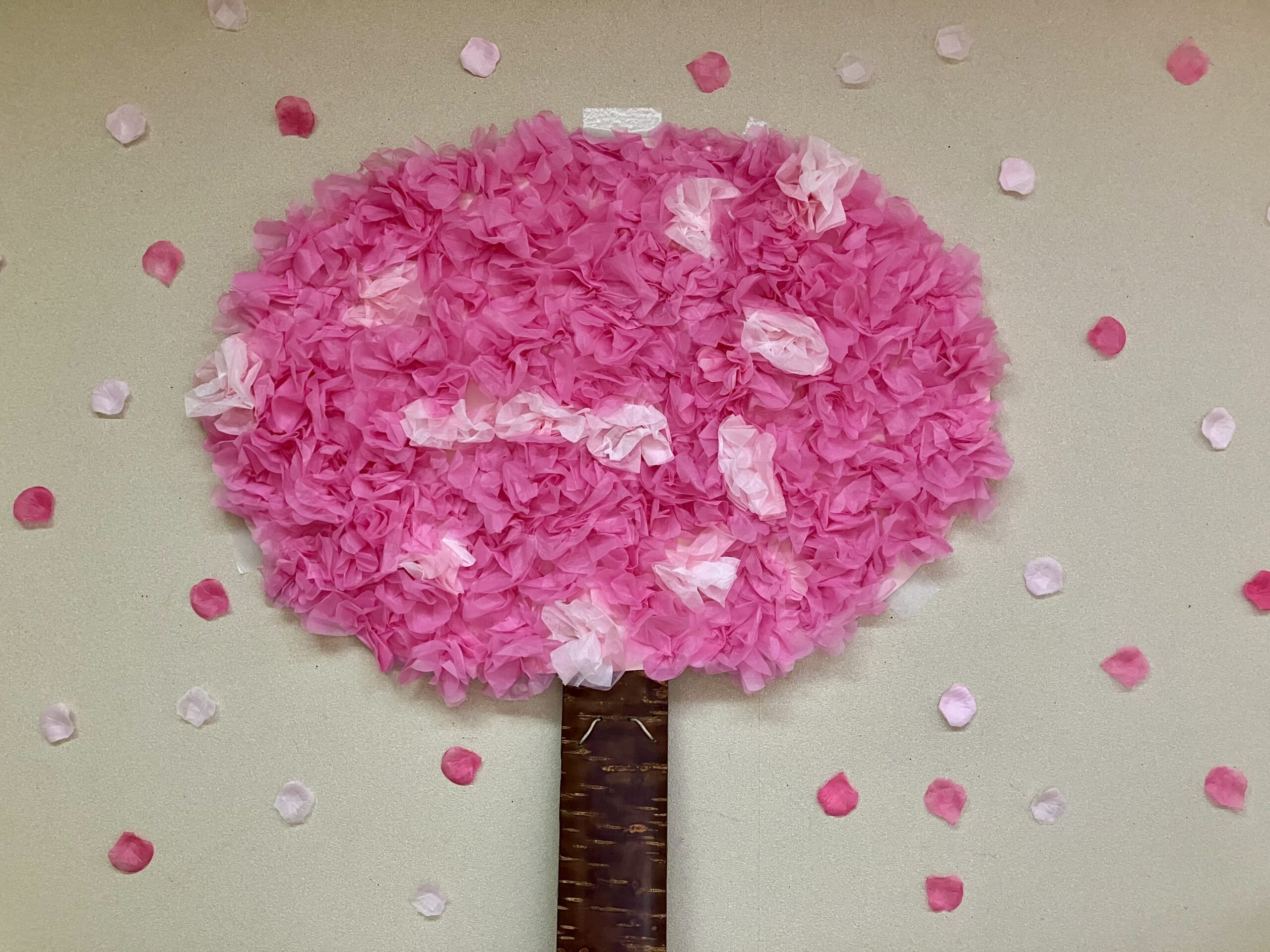また、会場内には利用者の皆さまと一緒に制作した桜の作品も飾られ、春らしいあたたかな雰囲気を演出してくれました。